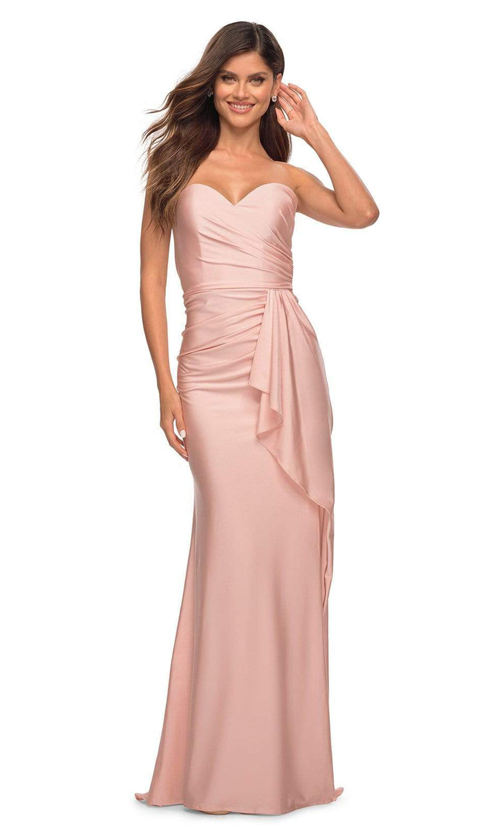 La Femme - 30515 Strapless Ruched Jersey Dress In PinkLa Femme - 30515 Strapless Ruched Jersey Dress In Pink