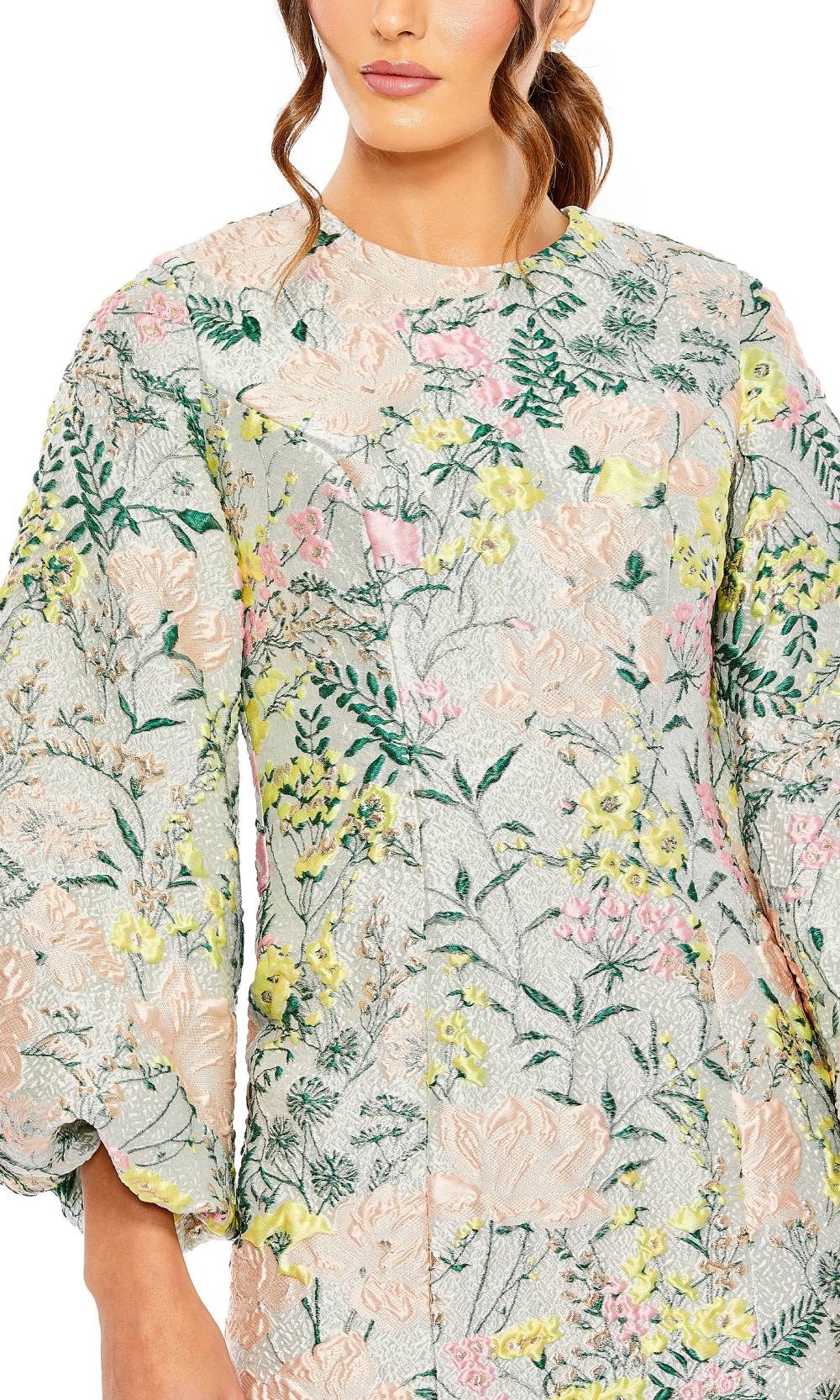Sold outMac Duggal 79222D - MFMac Duggal - 79222D Floral Embroidered Long Sleeve Trumpet Dress In Neutral and Multi-Color