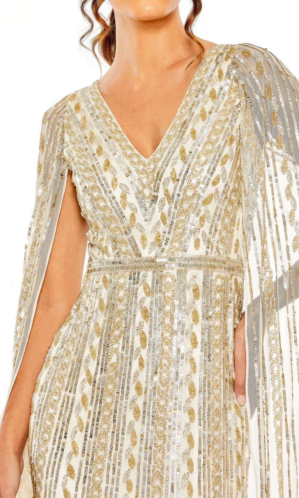 Mac Duggal - 5501 Bishop Sleeve Sequin Gown In NeutralMac Duggal - 5501 Bishop Sleeve Sequin Gown In Neutral
