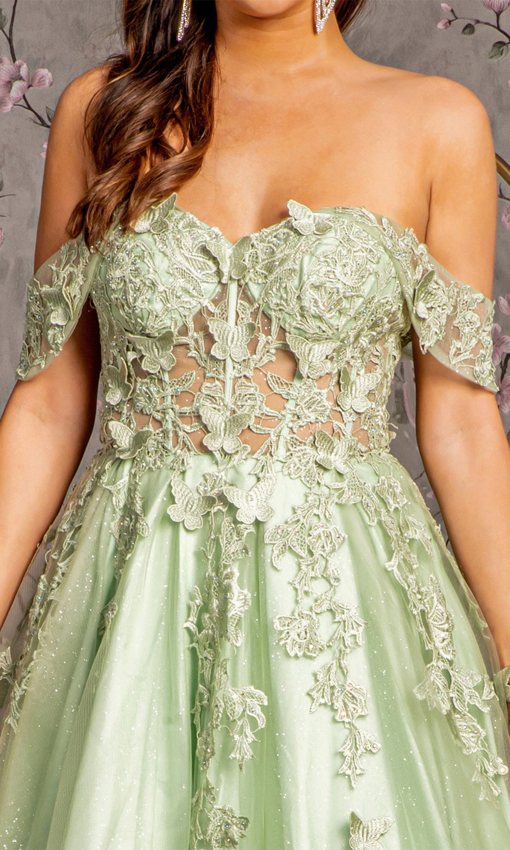 Elizabeth K GL3169 - Cold Shoulder Quinceanera Gown Special Occasion Dress XS / GreenElizabeth K GL3169 - Cold Shoulder Quinceanera Gown Special Occasion Dress