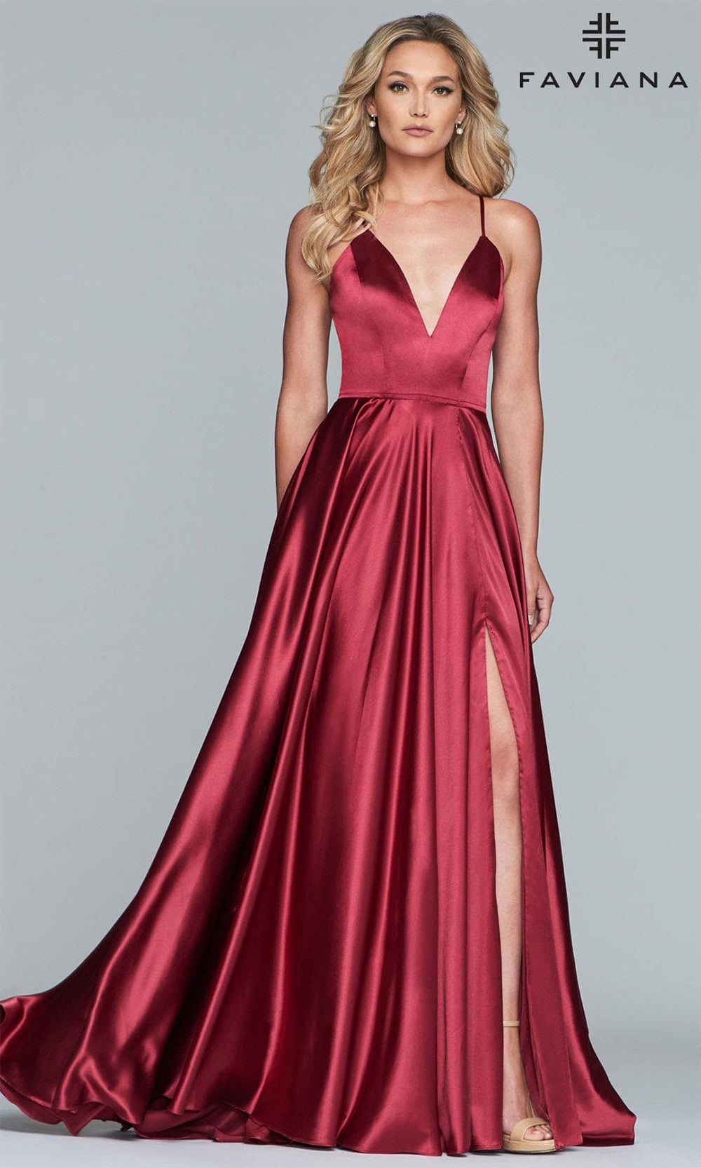 Faviana S10209's stunning dress will leave you speechless. Tailored from charmeuse fabric that offers a sleeveless bodice crafted with clean seams and is held together by tiny straps that crisscross at the back and lead to a lace-up detail, making it even more appealing. The skirt glides smoothly into an A-line silhouette and culminates with a modest train accentuated with a slit. Be in the spotlight wearing this extravagant Faviana masterpiece.