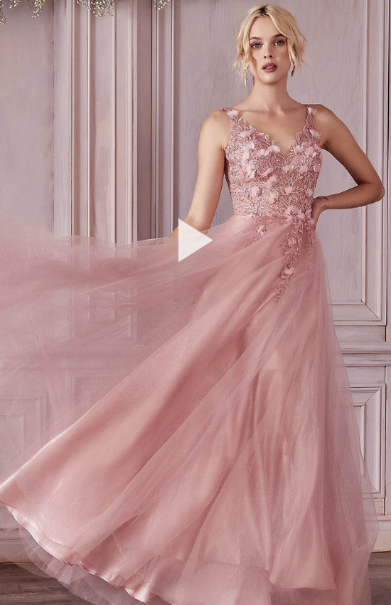 Gather awed second glances in this Ladivine CD0181 creation. Exquisitely crusted with beadwork, embroidery and floral appliques, this gown features a deep v-neckline coupled with a v-open back. Sumptuous layers of gossamer fabric flares into a floor length hemline. Saunter on the red carpet in style in this Ladivine masterpiece.