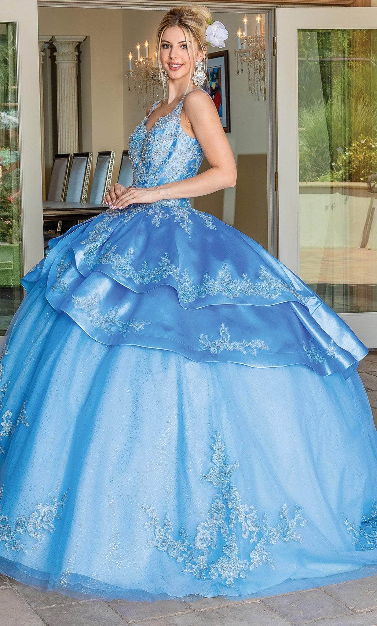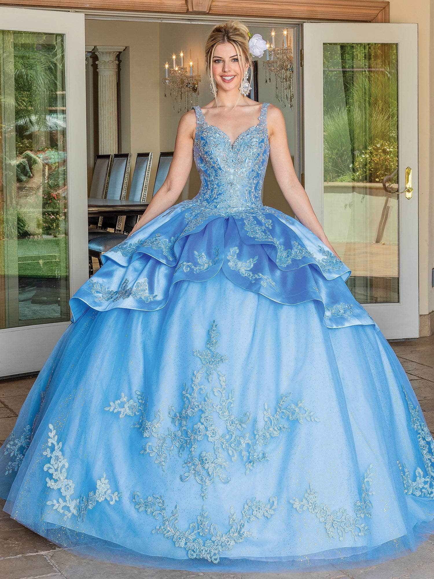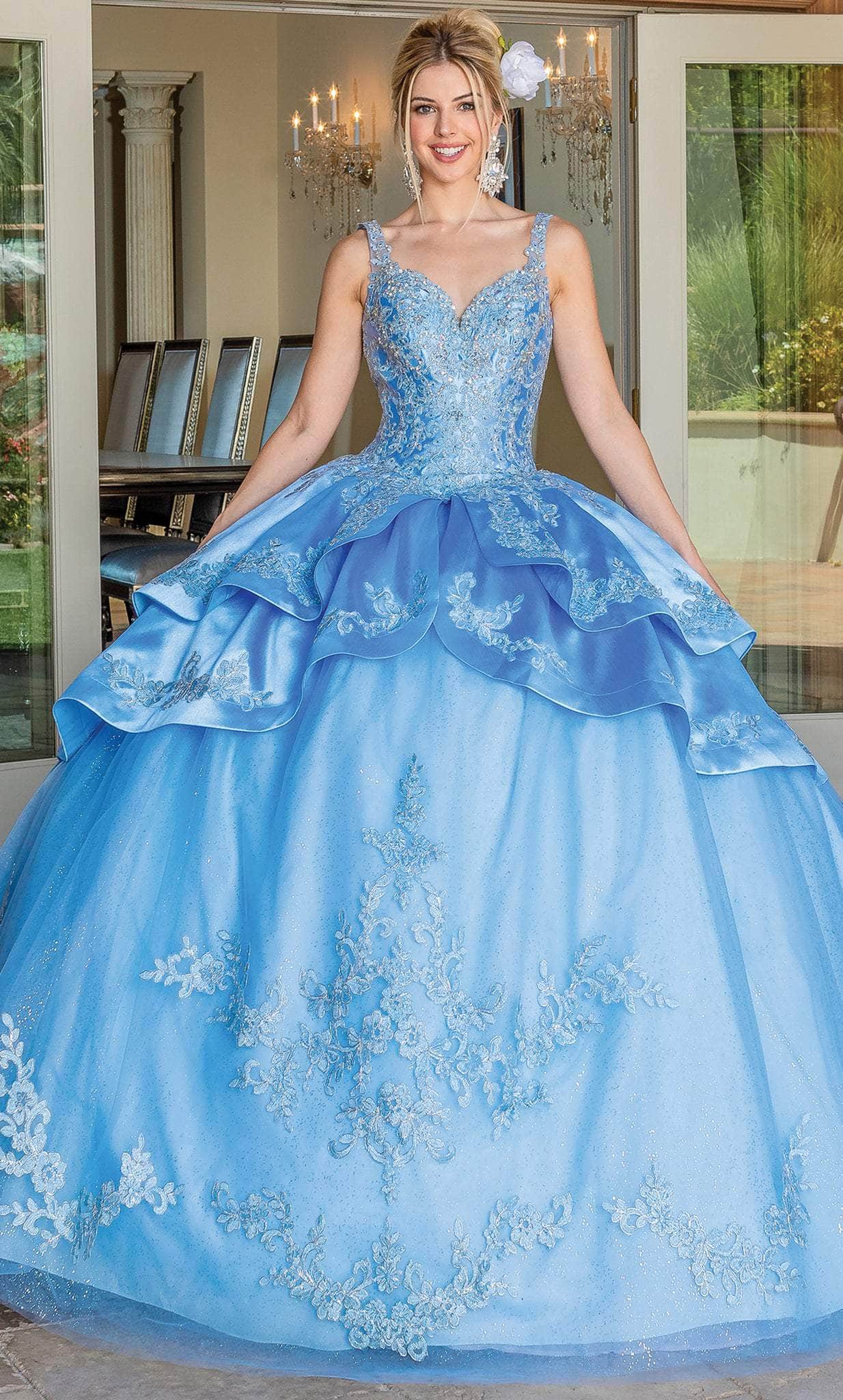 When you arrive at your Quinceanera wearing this Dancing Queen 1682 design, everyone will be transfixed. This gorgeously textured item flatters with a sweetheart neckline, embellished shoulder straps, and lace appliques with leaf designs. A richly layered peplum accent wraps around the waist, which is encrusted with opulent decorations and fashioned with a low scoop back and corset. The exquisitely designed skirt has embroidered accents and a sweeping finale before it reaches the floor. When you wear this magnificent Dancing Queen masterpiece, embrace your inner style star.