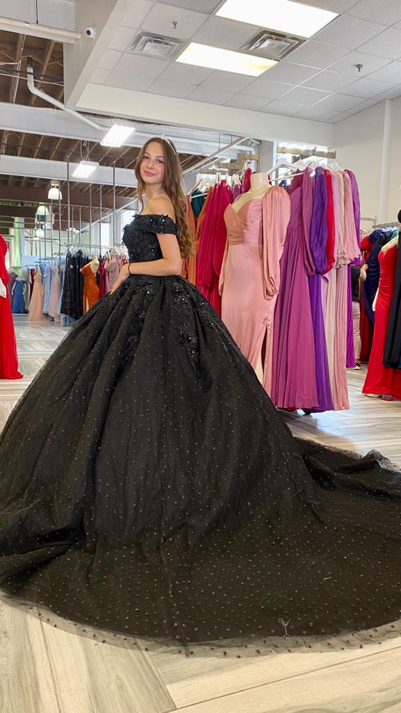 In this interesting Dancing Queen 1726 production, plan a dramatic grand entrance to create drama. This stunning dress has a foldover off-the-shoulder neckline and is elegantly embellished with 3D floral embellishments and glistening rhinestone elements. A ballgown silhouette is created by the polka glitter pattern skirt, which is embellished with 3D floral embellishments and has a corset-cinched back. Floral lace accents flow into a sweeping conclusion. Put on this brilliantly embellished Dancing Queen masterwork to strike a tone of romanticism.