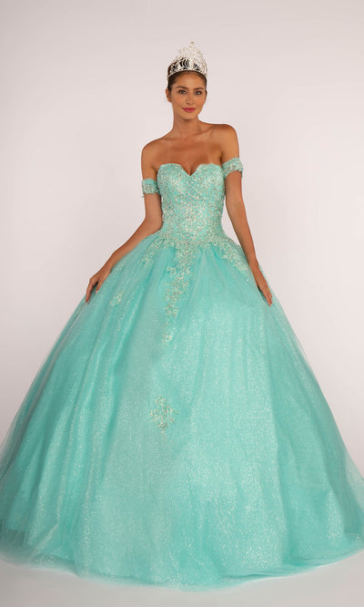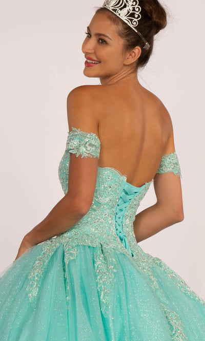 Stand out from the dazzling throng in this one-of-a-kind Elizabeth K GL2604 design. This creation features an off-the-shoulder neckline with a sweetheart cutout and embroidered lace appliques that sparkle with jewels. The interesting ballgown skirt has a low back that is tightened with lace-up corset detailing, and it layers and floats in sheer flutters to a floor-sweeping full length. Wearing this Elizabeth K. masterpiece will make you shine with an unmistakable air of sophistication!