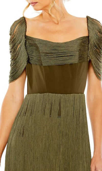 Unleash your inner diva with Mac Duggal 20568. This stunning dress features a fully lined design, ensuring comfort and coverage. The short sleeves add a touch of sophistication, while the tiered fringe skirt detailing adds movement and drama to your every step. The open back adds a flirty and alluring touch to the dress, making it perfect for a night out or a special event. The concealed back zipper ensures a secure fit, while the tea-length hem adds a touch of elegance and charm. With its sweetheart neckline, this dress is the epitome of glamour and style.