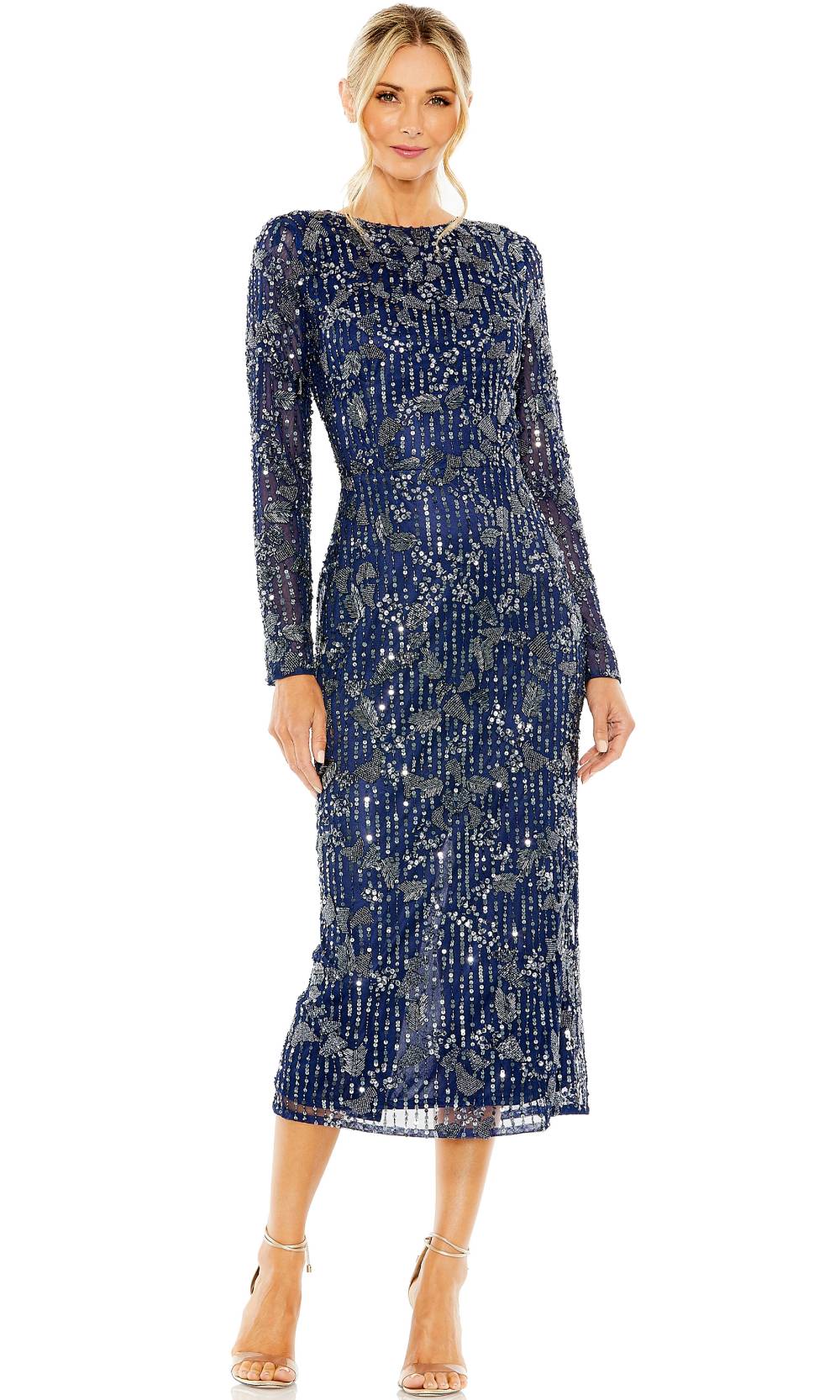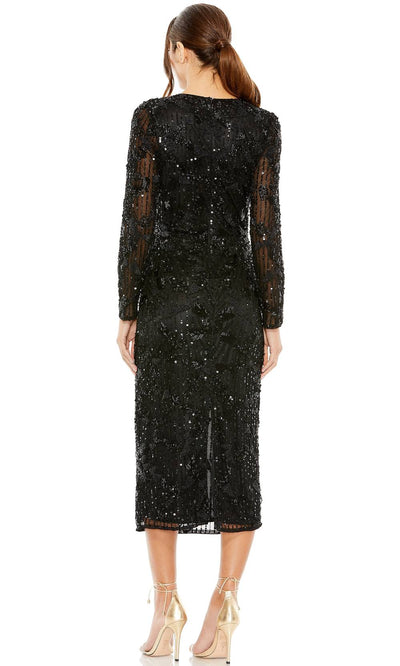Embrace timeless elegance in the Mac Duggal 5988 gown. With its long sleeves and tea-length hem, this dress exudes sophistication and grace. The fitted silhouette flatters your figure, while the back slit adds a touch of allure to your stride. Adorned with exquisite beading and sequins, this gown sparkles with every step you take. The high-neck design and high back add a touch of modesty and class to the overall look. The back zipper closure ensures easy dressing, making this dress a perfect choice for your next special occasion or formal event.