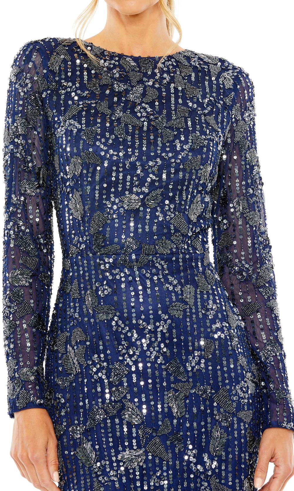 | Details: | Long Sleeve, Fitted, Back Slit, High Back, Beaded, Sequin, Back Zipper |