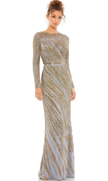 Mocha Mac Duggal - 5240D Bedazzled Long Sleeve Fitted Dress | Long Sheath Dress Skip to content