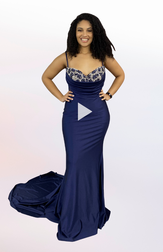 Charm everyone at your event in this Portia and Scarlett PS22180 creation. Sprinkled with chunky jewels along the bust, this spaghetti strap gown features a sweetheart neckline with a sheer back. Rendered with illusion sides, the skirt sculpts into a mermaid silhouette and a train. Illuminate the night in this Portia and Scarlett masterpiece.