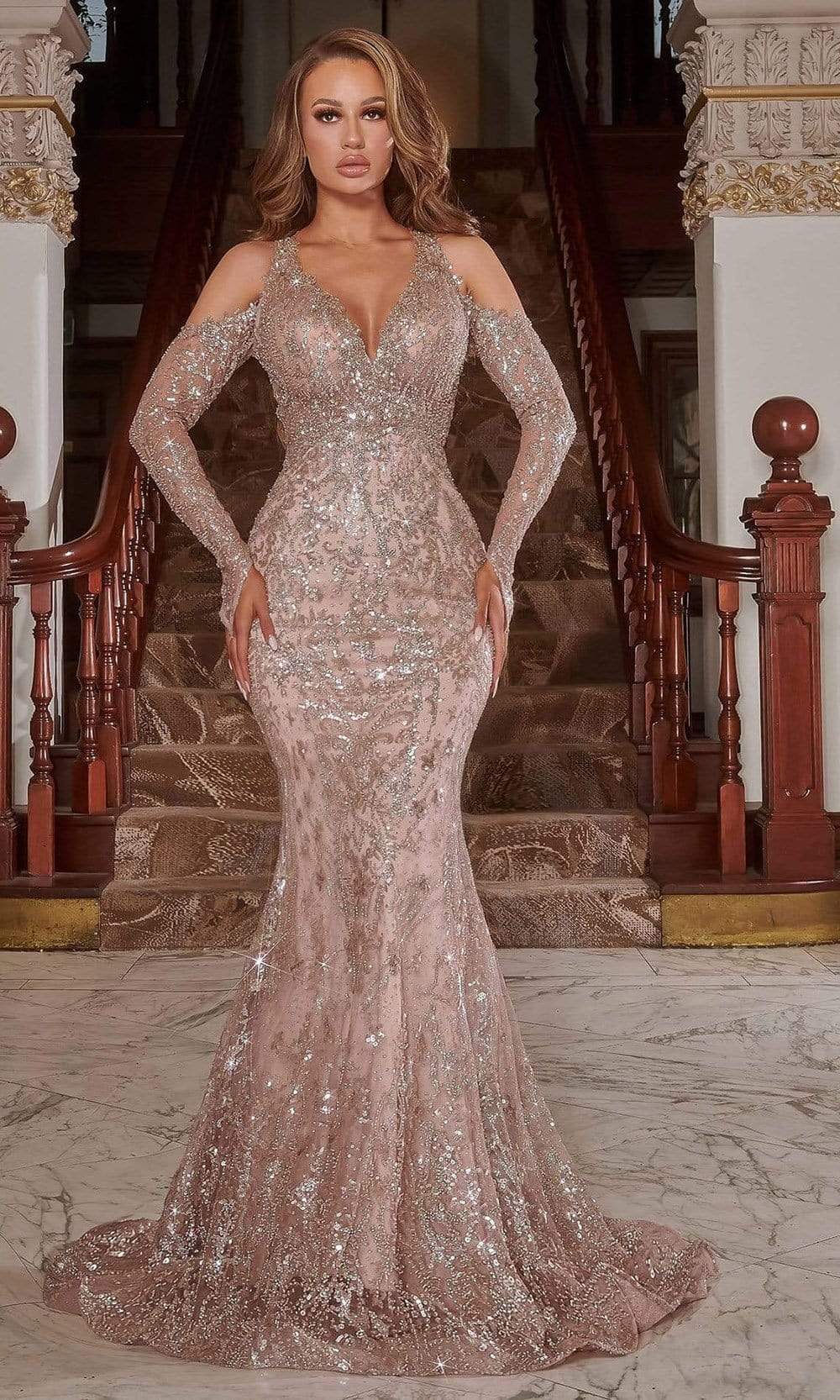 Portia and Scarlett - PS22909 Beaded Cold Shoulder Gown | Long Mermaid Dress Skip to content